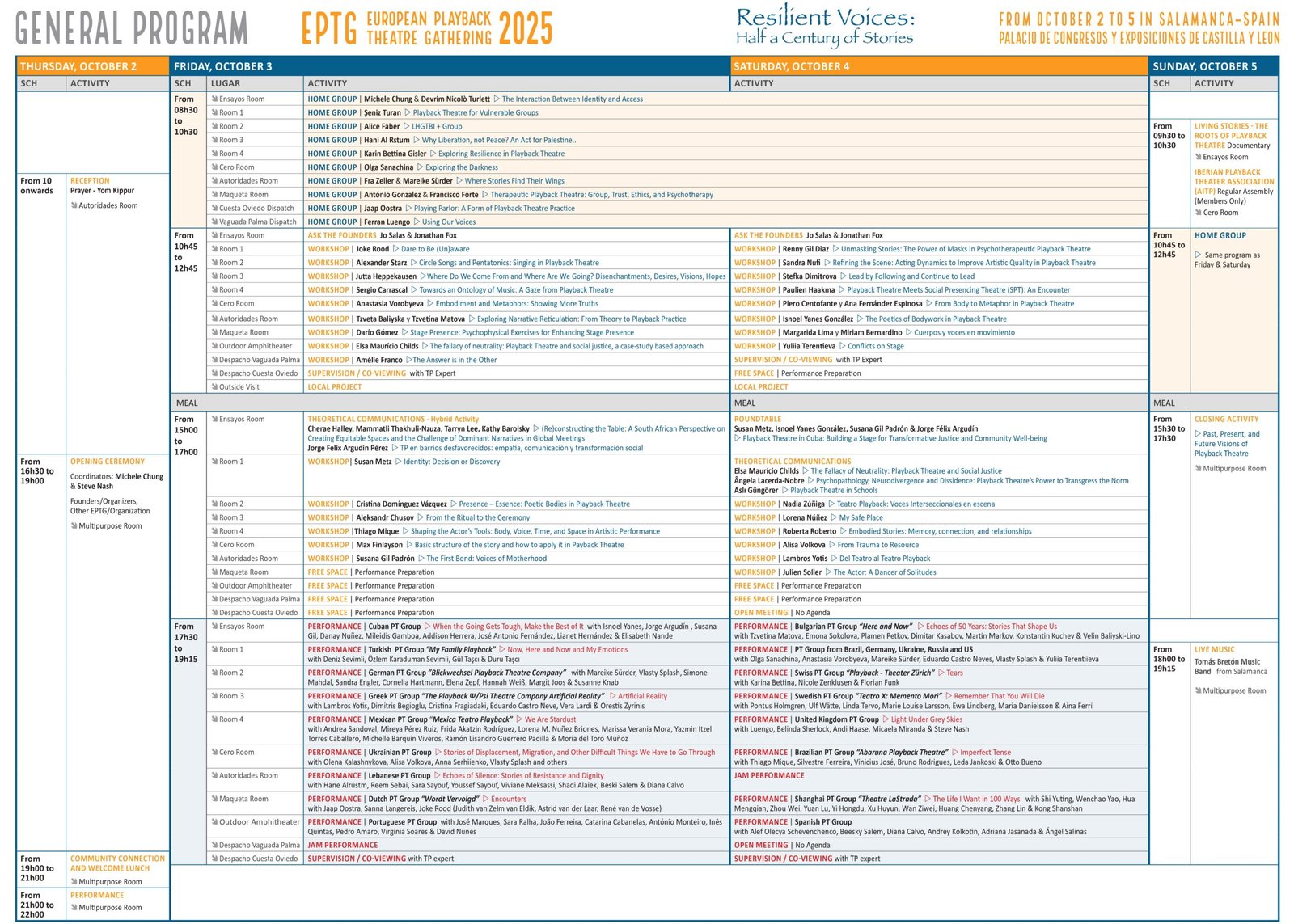 O Encontro Europeu de Teatro Playback, que se irá realizar de 2 a 5 de outubro em Salamanca (Espanha), nasce com o desejo de reunir a comunidade internacional de Teatro Playback num espaço acolhedor e fértil, onde possamos continuar a crescer juntes, como uma comunidade viva e diversa.
